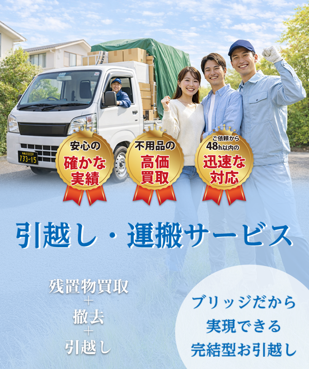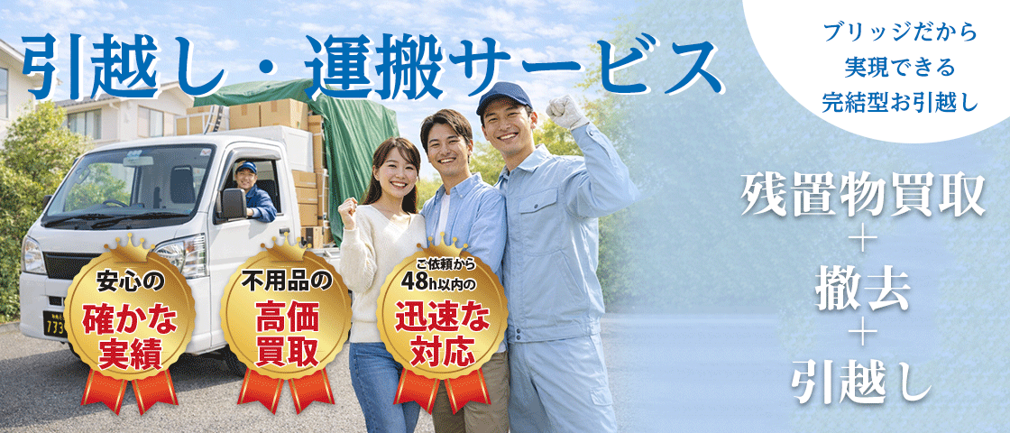 ブリッジなら!不用品回収も買取事業も両サービスを実施しており、一括査定+買取または回収が可能!